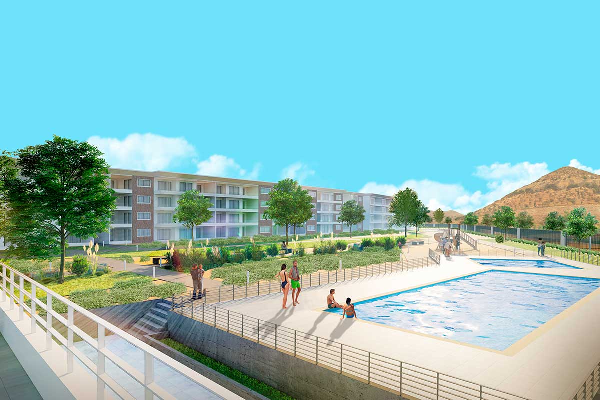 Es el lugar perfecto para disfrutar en vacaciones o invertir, por su excelente ubicación, a pasos de avenida del Mar y de 4 Esquinas. Cuenta con sala multiuso, piscina, 2 quinchos para asados, áreas verdes, juegos infantiles y bicipark. Departamentos de 2 y 3 dormitorios.
